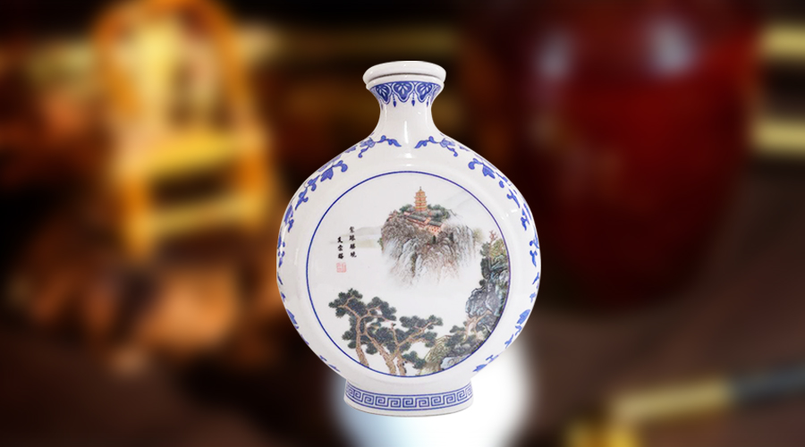 南通狼山,是萬里長江入海口上溯的第一座名山,山寺正門,有北宋米芾手書“第一山”。山不在高,有仙則名。狼山是大勢至菩薩道場,為佛教八小名山首推。山頂?shù)膹V教禪寺始建于唐總章二年,屹立于山巔的支云塔,歷來為江海平原制高點。山門另有一聯(lián)語:“長嘯一聲山鳴谷應,舉頭四顧海闊天空。”南通民間有句俗語:狼山大圣菩薩,照遠不照近。此大圣,即是唐代高僧僧伽大師,相傳為廣教寺開山祖師,其點化白狼的傳說,被視作狼山得名的由來。南通人說,大圣菩薩專照遠來人。這是南通民間熱情好客,盼望近悅遠來的美好心愿。大江東去,狼山靈秀,風景如畫。為將這江海之景傳于瓷上,主創(chuàng)者赴瓷都幾經(jīng)尋訪,請工藝美術(shù)大師出山,手繪狼山支云塔、望江亭圖景于瓷瓶。官窯純手工燒制成器,狼山之美得以永存。